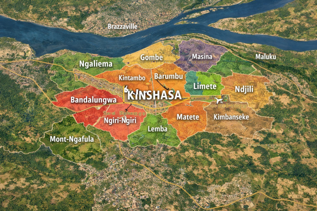 Kinshasa Property Trust organise les biens immobiliers par commune afin de faciliter la recherche et la compréhension du marché immobilier de la ville.